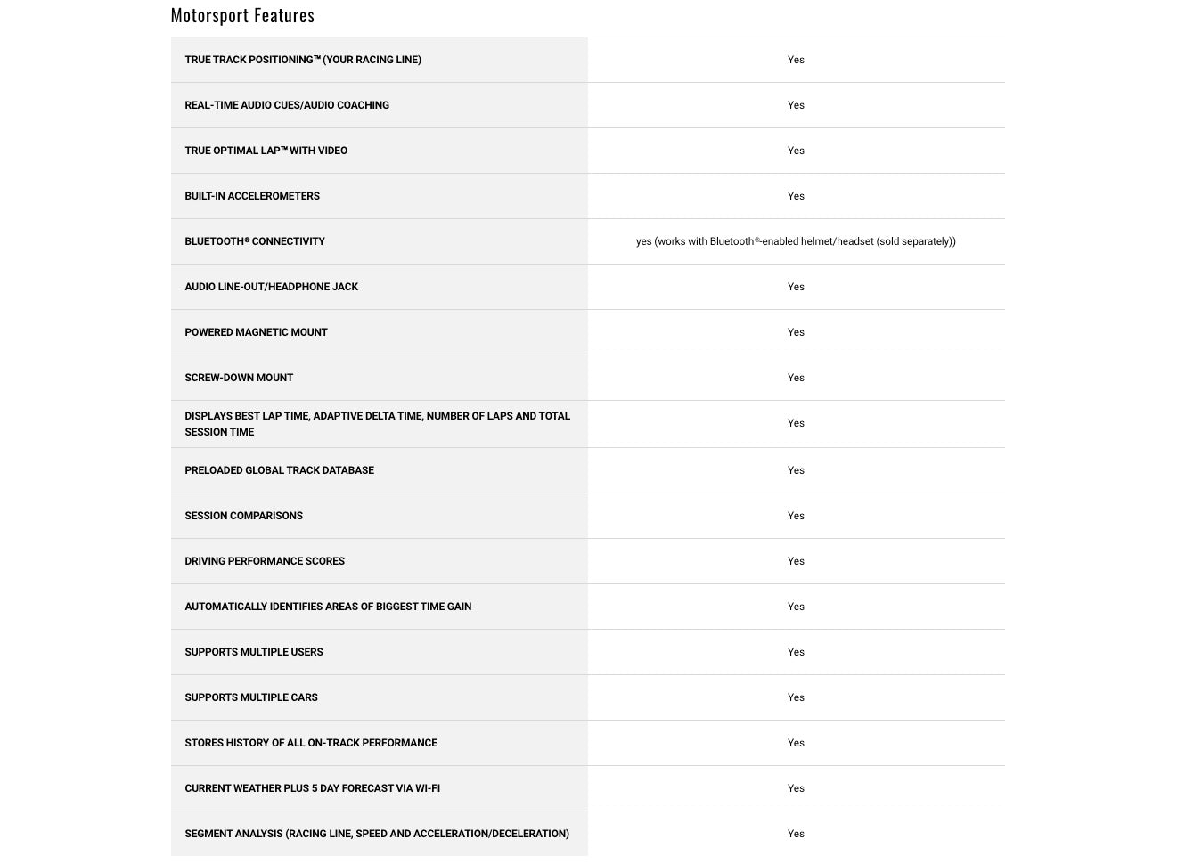 New technology uses 10 Hz multi-GNSS positioning, image processing and built-in accelerometers to auto-generate your line on the track. The robust combination of built-in sensors from the Catalyst unit and the included Remote Cam accessory provide a unique solution for calculating your car’s track position in relation to the track map. Visit theonline support center, "True Track Positioning" for more information.