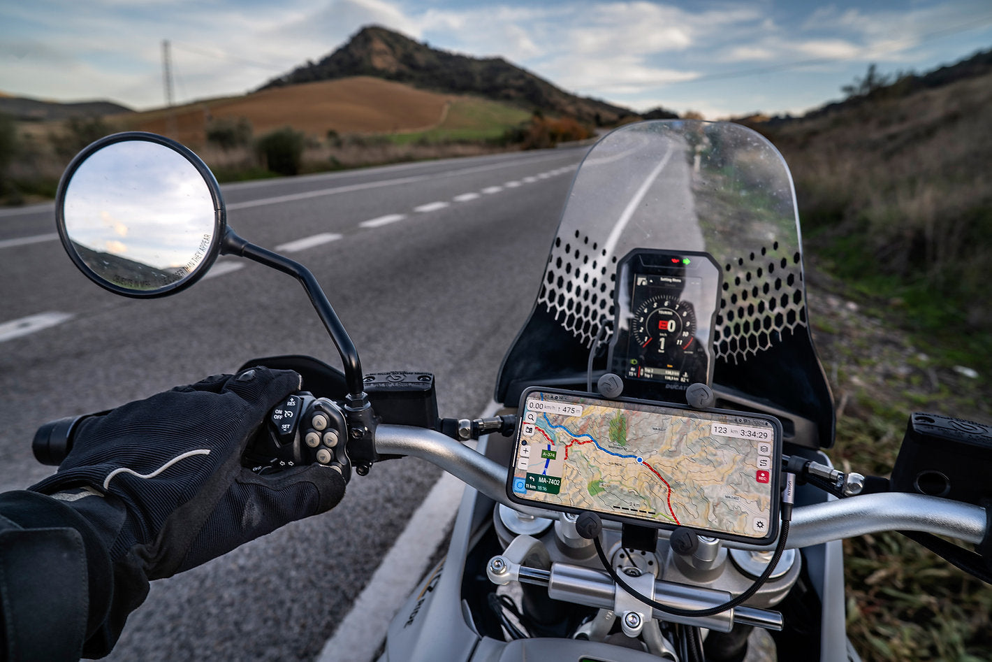 Control your map, media app, roadbook app and even a GoPro directly from your handlebar without taking your eyes off the road or trail. Switch easily between your favourite applications, adjust brightness and volume, skip tracks, play/pause and more.